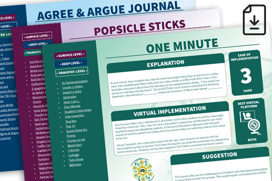 These strategies are intended for classroom use in face-to-face, synchronous (live streaming), and asynchronous (online self-paced) learning environments. Each one provides teachers with meaningful data about just how much students understand about recently covered content. The cards include: