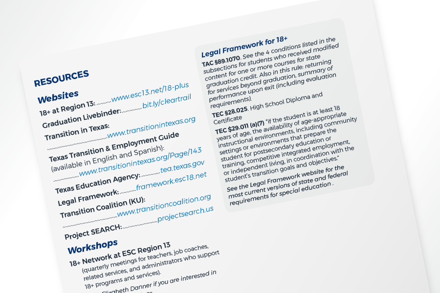 Transition Planning: At-A-Glance Series Bundle was produced and is maintained by the team of Special Education Specialists at Region 13.